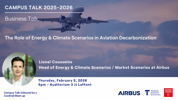 The careers service is pleased and honored to welcome Lionel Cousseins (Head of Energy & Climate Scenarios / Market Scenarios at Airbus) who will be giving a Business Talk on February 5th at 5pm.