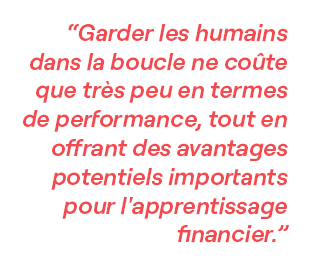 • Un avenir hybride – Le juste milieu combine la précision algorithmique et la supervision humaine, améliorant à la fois les rendements financiers et les compétences financières.