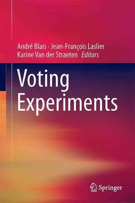 Andre Blais, Jean-François Laslier et Karine Van der Straeten, édite un nouvel ouvrage VOTING EXPERIMENTS.Ce volume édité contient 16 contributions de politologues, économistes et psychologues, dans le but d'offrir une perspective large sur le recours aux méthodes expérimentales dans l'étude des élections. Il vise à montrer la grande variété de méthodes expérimentales qui peuvent être mobilisées - expériences en laboratoire, sur le terrain et par sondages - pour étudier le comportement des électeurs mais aussi les stratégies électorales des partis et des candidats. (Springer Editions)