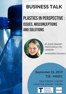 We are delighted to welcome Aude Grasset (Uncle LTD) who will talk on environmental issue "Plastics in perspective: Issues, miconceptions and solutions"on September 26th, 2019 at 5pm ; room MS 001.