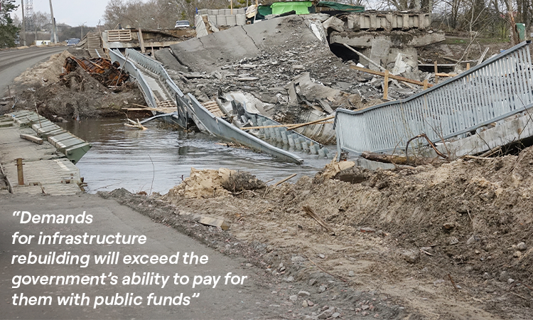 As for the cost of this reconstruction and its requirements, it is difficult to estimate at this stage since the war is ongoing. Demands for infrastructure rebuilding will obviously exceed the government’s ability to pay for them with public funds. Our recommendation would be to use private public partnerships rather than privatization. There will also be a need for robust economic regulation, which will differ depending on the type of transport infrastructure.
